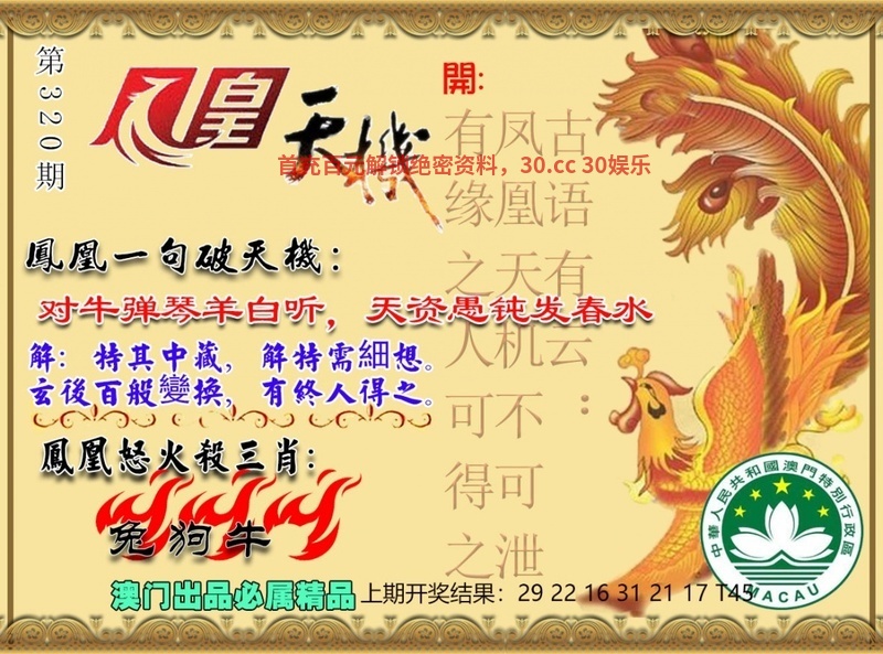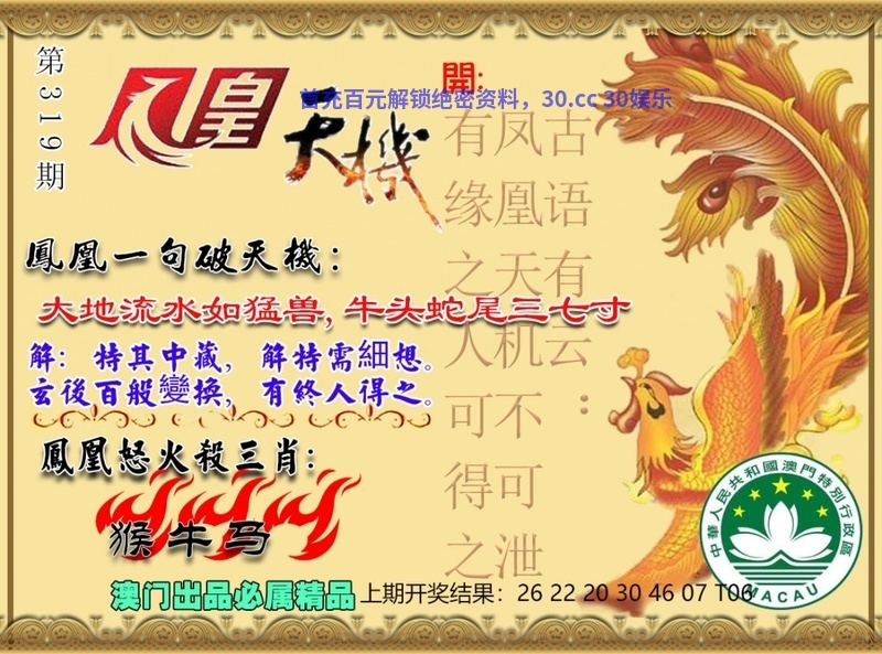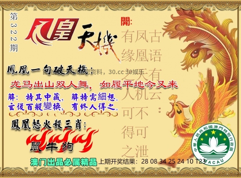 322期:凤凰一句破天机:龙马出山双人舞,如履平地今又来 |
